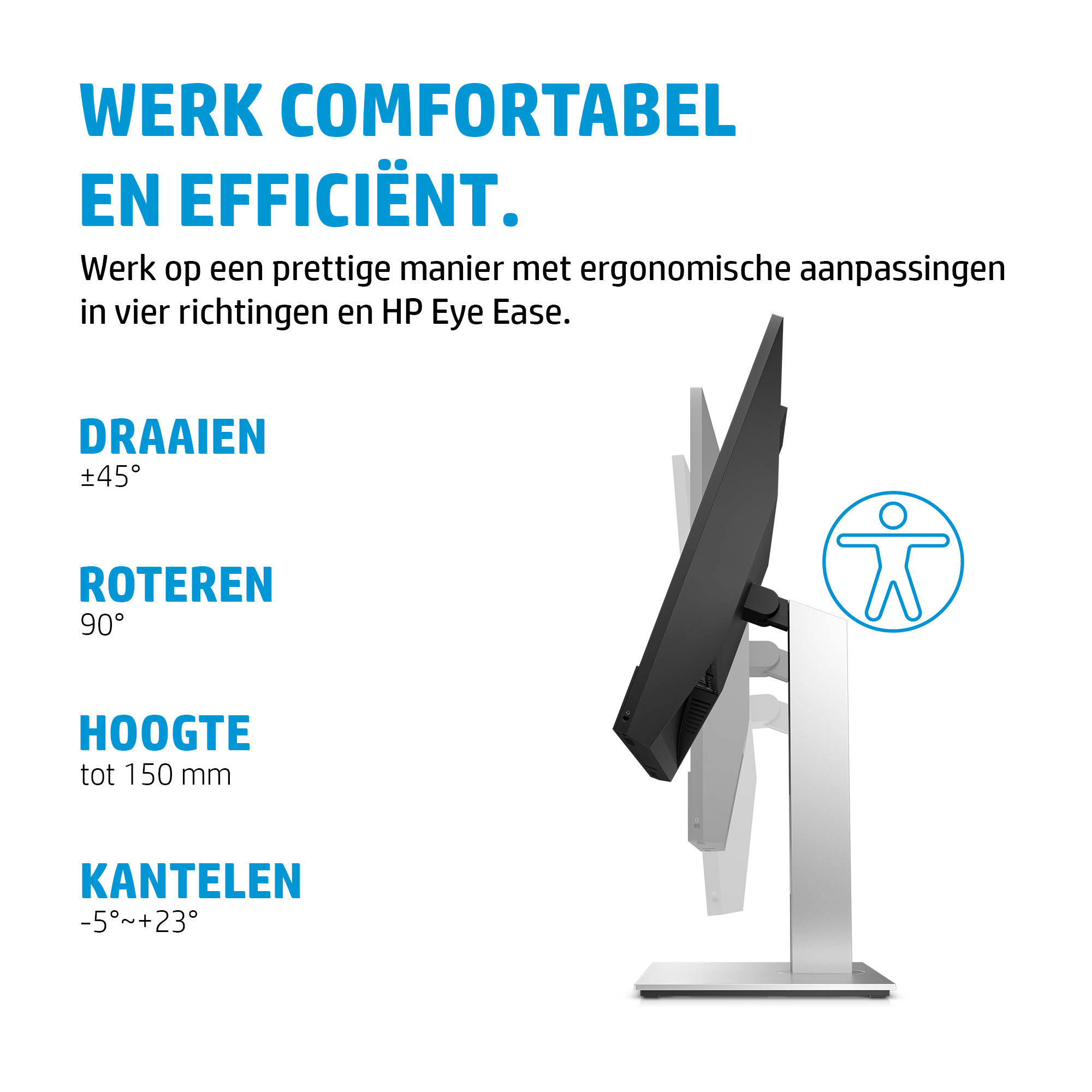 De HP E24m monitor is niet alleen functioneel, maar ook ontworpen met het oog op gebruiksgemak. De kantelbare webcam biedt flexibiliteit in het positioneren van de camera, zodat je altijd op je best in beeld bent. Dit is vooral handig voor videoconferenties, waar een goede beeldkwaliteit van groot belang is. De monitor is ook geschikt voor langdurig gebruik, met een scherp beeld en een comfortabele kijkervaring.