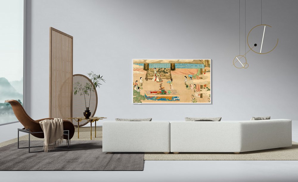Een uniek aspect van deze televisie is de AI Art-functie en de geïntegreerde galerijmodus. Wanneer de TV niet in gebruik is, kan hij kunstwerken of persoonlijke foto’s weergeven, waardoor hij perfect opgaat in het interieur.